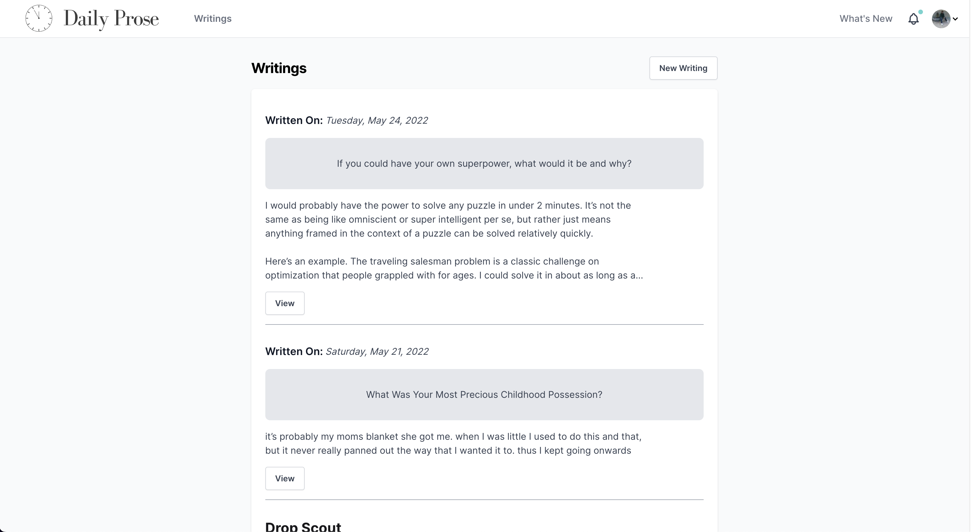 Whether you're an aspiring writer, or a lifelong learner, Daily Prose can guide you on your journey.